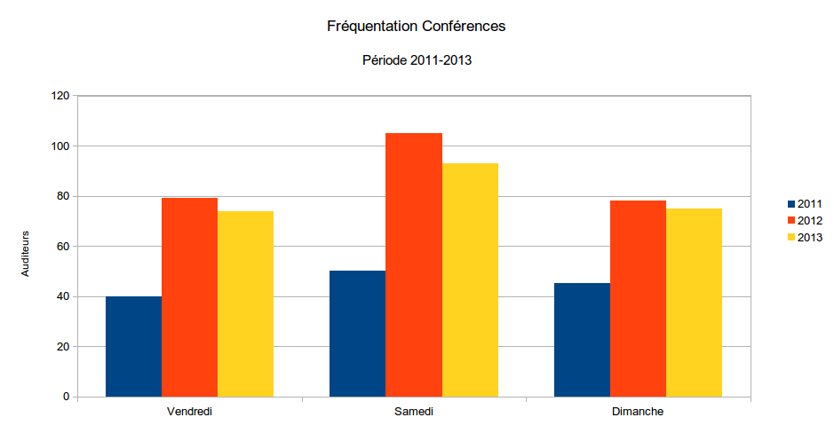 La fréquentation reste constante avec une moyenne de 80 personnes par soir sur les 3 soirs et un pic comme toujours le samedi à 93 et ce malgré l’ouverture du festival de photojournalisme de Perpignan, Visa pour l’Image.