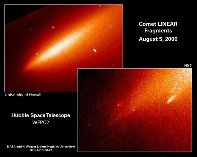- Désintégration de la comète Linear. Images prises par le télescope spatial Hubble