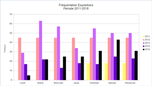 Le taux de visite de l’exposition est plus faible que lors des années précédentes, en particulier en matinée, ceci peut être dû à la très forte canicule lors de la semaine du Festival (températures supérieures à 25°C chaque nuit, température avoisinant les 35°C en journée).