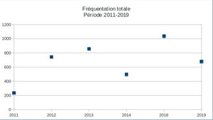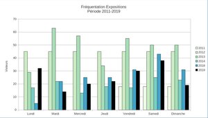 Cette année l’exposition n’était ouverte que le matin. La fréquentation est dans la continuité de 2018 avec un net rebond le lundi dû à la conférence d’ouverture.