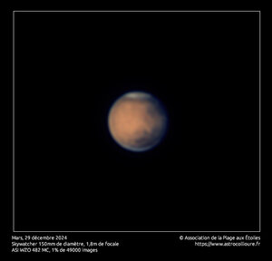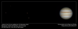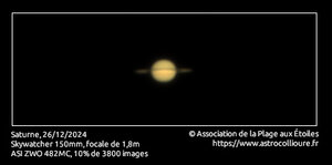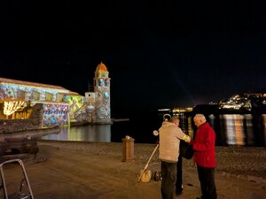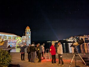 Ce samedi 28 décembre, l’Association de la Plage aux Étoiles s’est installée au pied du célèbre clocher de Collioure, illuminé dans le cadre de l’événement Lumières sur Mer pendant les fêtes de fin d’année. Deux télescopes, de 15cm et 20cm de diamètre respectivement, étaient en batterie pour faire découvrir les planètes au public : Jupiter, Saturne, Mars et la Grande Nébuleuse d’Orion ont émerveillé les visiteurs.