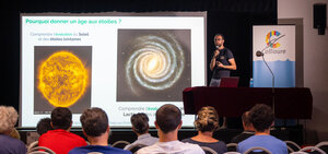 À partir du vendredi 1er août, les conférences se sont enchaînées tous les soirs à 18h. Vendredi 1er, Morgan Deal, chargé de recherches au Laboratoire Univers et Particules de Montpellier (LUPM), nous a expliqué comment déterminer l’âge des étoiles.