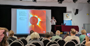 Le samedi 2 août, c’était au tour de Carine Briand, astronome au Laboratoire d’Instrumentation et de Recherche en Astrophysique (LIRA) de nous parler du souffle du Soleil.